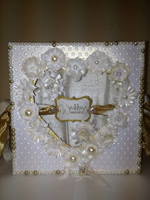 | I created a false front for my card using starlights-silver-ice card, embossed it and covered all the outside edges with tiny pearls - |
